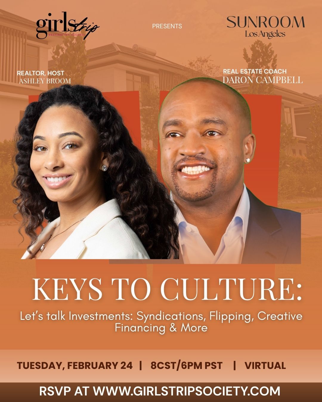 Keys to Culture: Let’s Talk Investments is a powerful virtual conversation exploring real estate, syndications, flipping, creative financing, and wealth-building strategies. Join industry leaders Ashley Broom and Daron Campbell as they break down smart investing, practical tools, and the mindset needed to build lasting financial legacy.